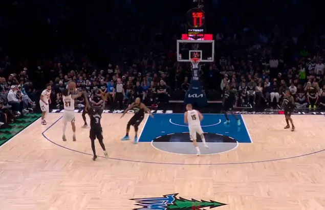 第四节比赛中,默里干拔三分投进末节连拿9分,掘金追至9分森林狼叫停。